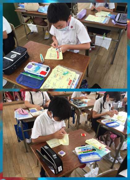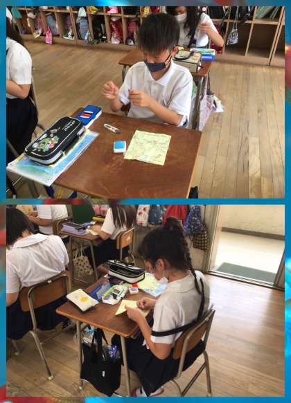今回は,練習布を使って,自分の名前の縫い取りをしているようです。