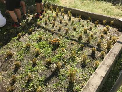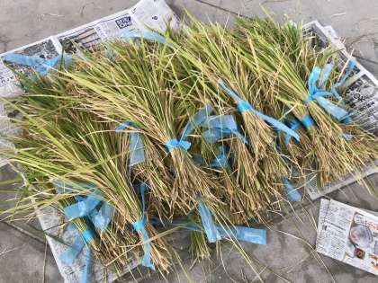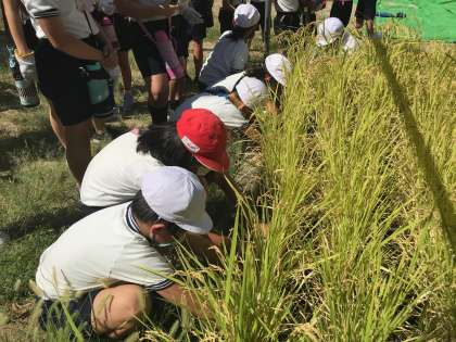 残暑厳しく、まだまだ夏の暑さを感じる日々が続きますが、桜小では秋を感じることがありました。ついに初夏から育ててきたお米を収穫することができました。米作りの大変さを身に染みて感じることができました。「はさ掛け」をして、しばらく乾かした後に脱穀をし、お米となります。獲れたお米は、調理実習をしてみんなで食べる予定です。「桜小米」のお味はいかに!