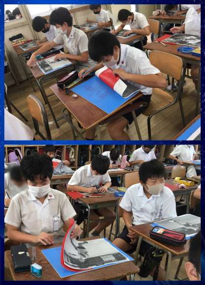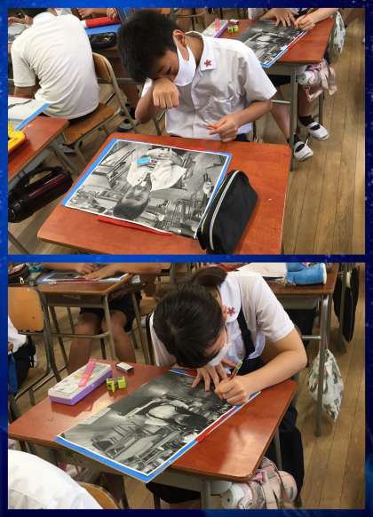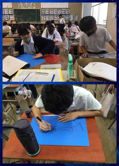今日の図工では,トレース紙を使って版画に写真を写しとりました。