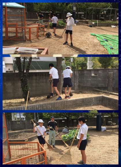 休み時間に学習園に行ってみると,6年生が枯草の掃除をしてくれていました。