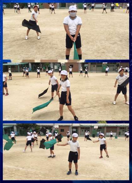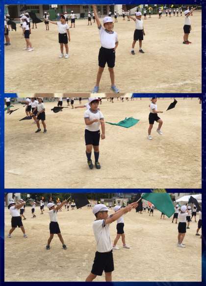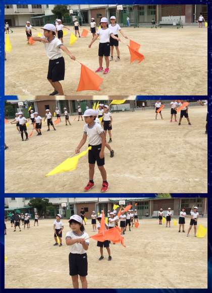 今日は,4年生が運動場で練習していました。