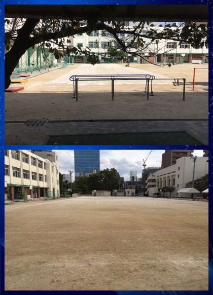にがりを運動場にまくことで砂ぼこりが立つのを減らすことができます。