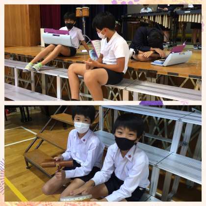6年生は,講堂で合奏の練習をしていました。