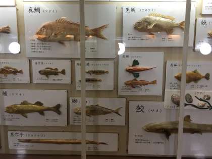 咸臨丸の船長室と、鳴門海峡の魚たち。
