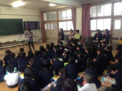 1月29日(木)の2時間目、多目的室で桜宮連合の女性会のみなさんに「昔の生活体験の話」を伺いました。3年生の社会科では、昔の暮らしについて学習しています。自らの体験をもとに「昔はこうだったよ。」とわかりやすく写真や実物を見せていただき、話をしてもらいました。子どもたちは、真剣に聞き入っていました。