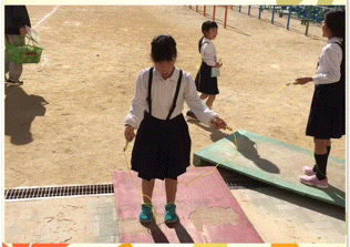 運動会で,なわとびを使った表現運動をして以来,なわとび台の前は3年生でいつもいっぱいです。