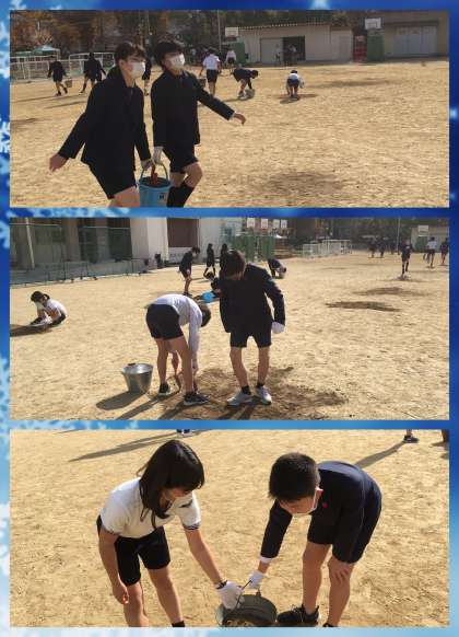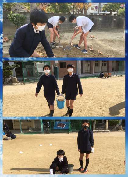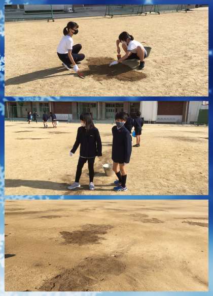 4年生と同じように,運動場の土入れ作業です。