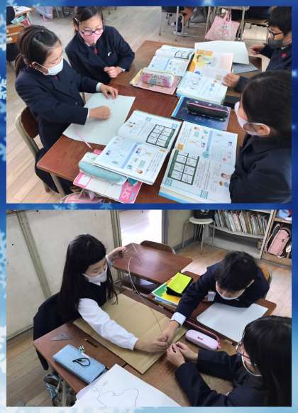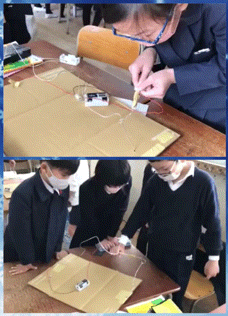 まず「電気で明かりをつけよう」の学習を思い出しながら,イライラ棒の設計図を描きました。どの班も,学習内容をしっかり覚えていたので,正しい設計図を描くことができていました。