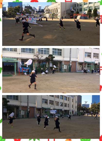 1年生が凧揚げをしています。