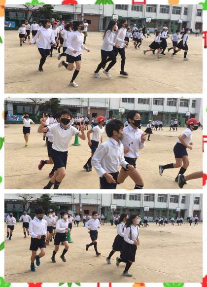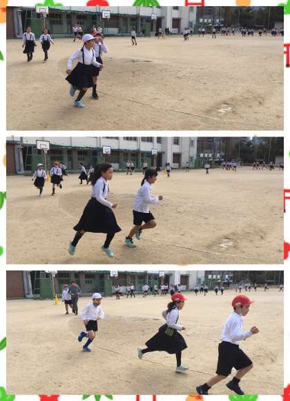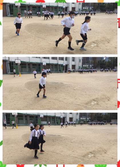 今日は,3年生と6年生が運動場を走りました。