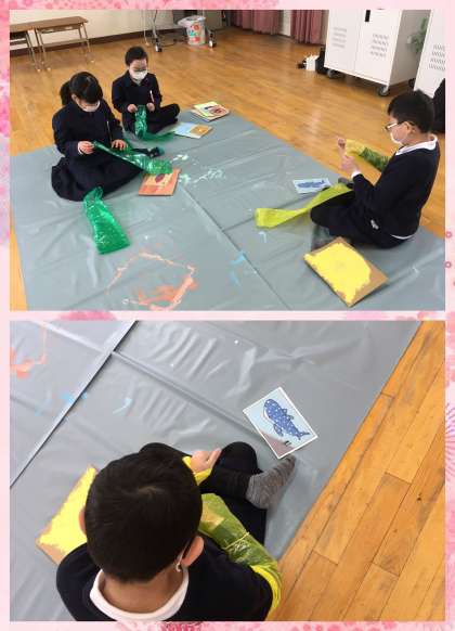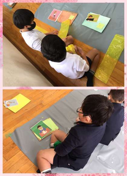 卒業を祝う会で6年生にプレゼントするための作品を作っているようでした。