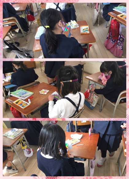 1年生が何か作っています。