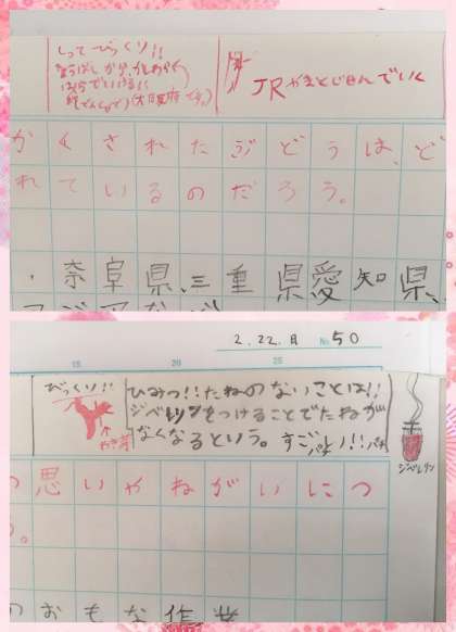 今日の社会では,収穫されたぶどうの行方について調べました。