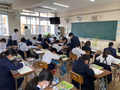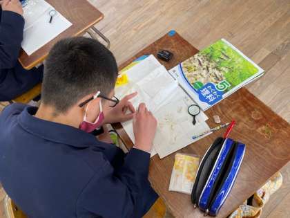5時間目、5年生の教室では理科の学習でアブラナの観察をしていました。花弁や種など、いろいろな部分の形や数をていねいに調べていました。おもしろい発見はあったかな?