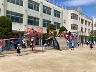 待ちに待った休み時間には、笑顔ではしゃいでいました。