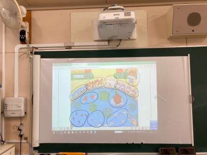 色々な学習で写真のように、デジタル教科書をプロジェクターで写します。