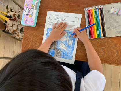 遊具や金魚、教室の黒板などを描いている子がいました。