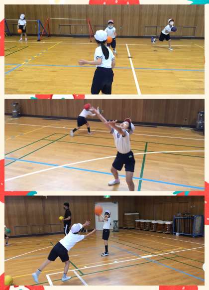 その後は,2つのボールをバウンドキャッチしたり,入れ替わって受けたりしました。