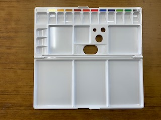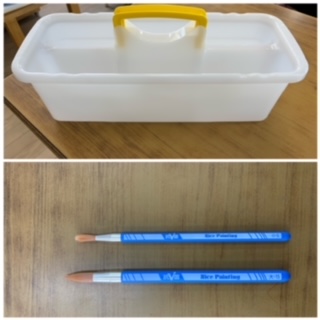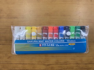 2年生から、図画工作科の授業で水彩絵の具を使います。学校で申し込まなくてはいけない物ではありませんので、それぞれでご準備をしていただいても構いません。パレットは折りたためるもので、15色程度出せるもの。絵の具はチューブで12色。筆は18号くらいの太いものと14号くらいの中くらいのものの2本。水入れは3つか4つのへやに分かれているもの。