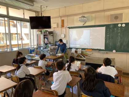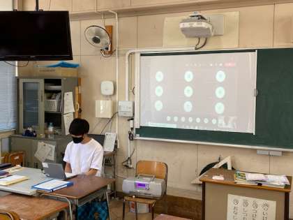 今、4年生と5年生のオンライン接続テストを行っています!!皆さん、先生の声は聞こえていますか?