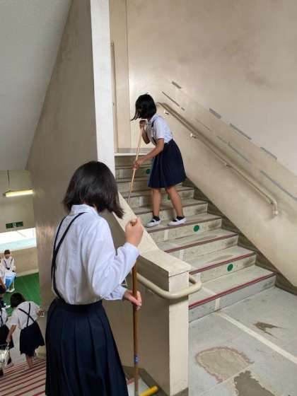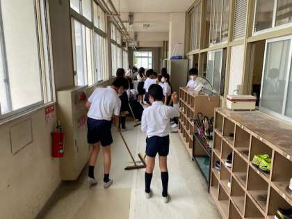 給食を食べ終わってから下校までの少ない時間でも、みんなで協力して教室や廊下など、学校をきれいに掃除しています。さすが6年生ですね。てきぱきと取り組んでいました。