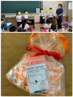 今、学校で育てているあさがおをしっかりと育てて、また一年後、同じようにプレゼントしようね!