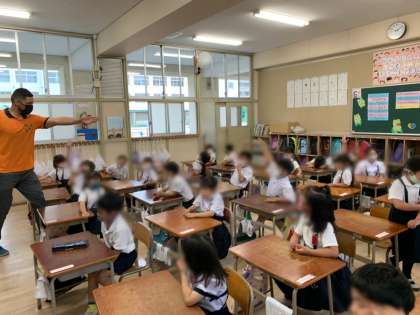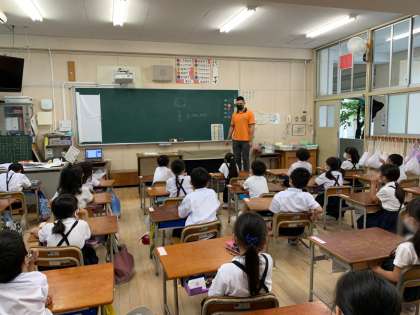 今日は、1年生の教室にC-NETのクリス先生が来られました。クリス先生の自己紹介をきいたり、質問をしたりしました。