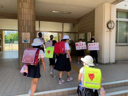 今日も朝早くから児童会のみんなが校門に立ち、あいさつをしていました。大きな声では言えないけれど、目を見てあいさつをすれば、しっかりと伝わりますね。みんな笑顔であいさつをかえしていました。