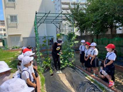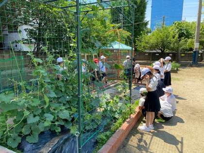 理科の学習でへちまとひょうたんを育てています。以前植えた苗はぐんぐん伸びて大きな葉っぱもたくさんできています。そして、今日は種から育てていた苗の植え替えをしました。これも大きく育ってたくさんの実をつけてほしいですね。