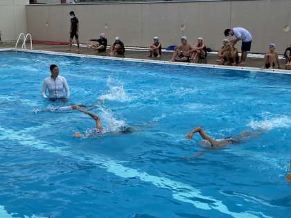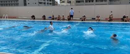 今日、元オリンピック選手の千葉すずさんに来ていただき、水泳の楽しさを教えていただきました。手のかき方や息継ぎの仕方など、教えていただいたポイントを意識して泳ぐと、みんなどんどん上手になっていきました。