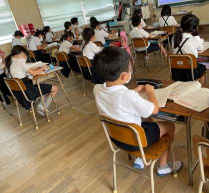 4年生は音楽科の時間にもののけ姫の主題歌を鑑賞しました。みんな一瞬のうちに映画の雰囲気に包みこまれたようです。感じたことをたくさんカードに書くことができました。