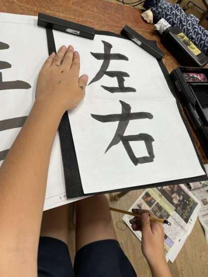 4年生は書写の時間に毛筆で『左右』を書きました。筆順や字のバランスをしっかりと考えて書くことができました。書写をする度に、集中力がついてきたなと感じます!どの授業でも集中して取り組むことができています。