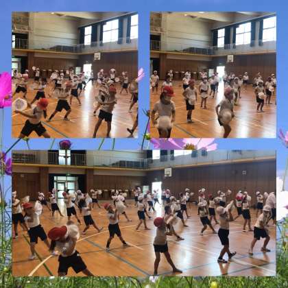 今日の運動会の練習では,花笠音頭の隊形移動をしました。