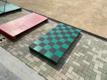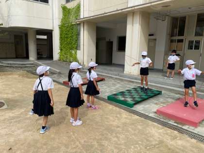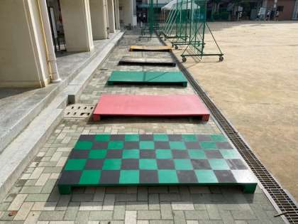 管理作業員がみんなのために、新しくジャンピングボードを作りました。そしてさっそく休み時間には列ができていましたね。一人一人、順番に正しく大切に使いましょう。