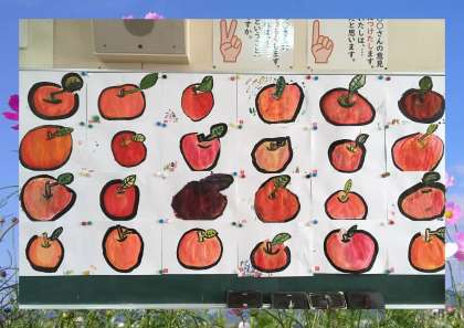 描き終わった後,子どもたちは「どの絵も個性があって味があるなあ。」と言いながら,友だちが描いた絵を見ていました。