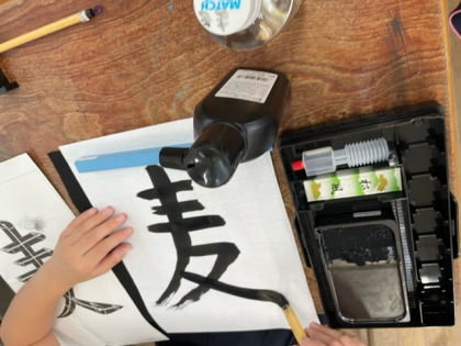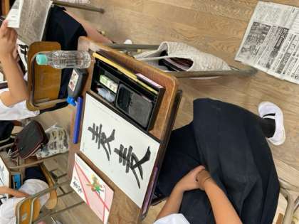 今日は「麦」という漢字を毛筆で書きました。最後のはらいが難しかったようです。苦戦をしながらもよく頑張りましたね!