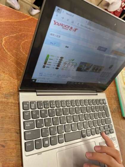 4年生は国語科の時間に、くらしの中の和と洋について学習しています。タブレットを使い、衣食住における和と洋の良さを調べています。