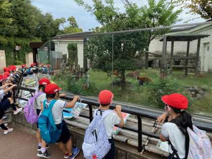1・2年生の秋の遠足で天王寺動物園に行きました。心配されていた天気も晴れて、とても過ごしやすい一日でした。動物園ではペンギンやクマ、レッサーパンダなどたくさんの動物を見ることがでました。