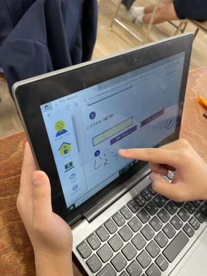 4年生はナビマを使って漢字の復習をしました。タブレットの使い方が本当に上手になりましたね。問題なく活用することができています。