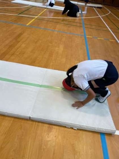 本日のマット運動の様子です。安全かつ教え合いながら取り組むことができています。ポイントをしっかりおさらいしておきましょう。