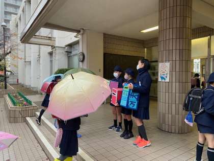 今日から3日間、登校の時間に代表委員会の子たちによるユニセフ活動をしています。集めたお金を世界の子どもたちのための活動に活用してもらいましょう。