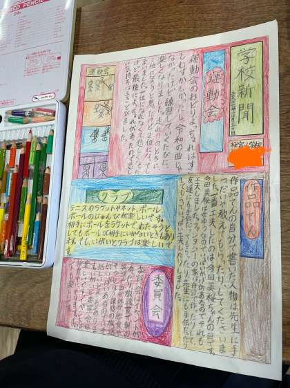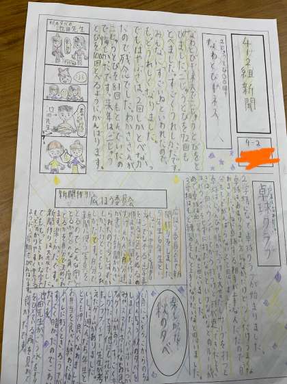 4年生の新聞作りの様子です。それぞれ個性的なものができてきました♪いい感じですね!