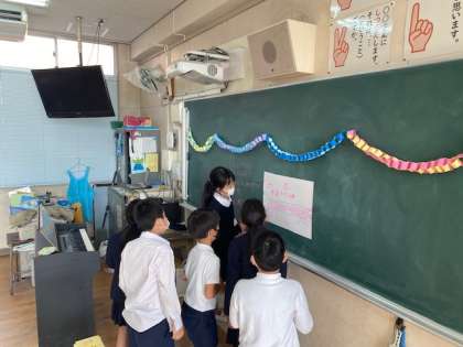 3年生が総合的な学習の時間に「係フェス」を行いました。1組・2組とも、グループごとに店を出し合いました。店を出すときには、ルール説明をしたり、ハンコを押したり、点数の計算をしたりと、みんなそれぞれが責任をもって役割をこなしていました。またお客さんの時には、グループの友だちとお店を回り、仲良く活動することが出来ました。