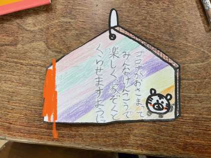 4年生は絵馬に今年の願いを書きました。それぞれの願いが叶うよう、今年も怪我なく楽しく過ごしましょう。