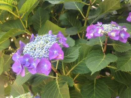 玄関を入ってすぐの両脇にあるアジサイの木に花が咲き始めました。これからしばらくの間、色が変化させながら、訪れる人の目を楽しませてくることでしょう。