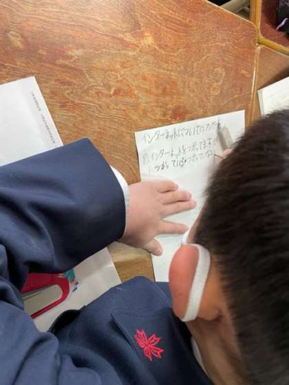 4年生の国語科の時間です。気になることをアンケートで調べます。このアンケートを集計して結果を表やグラフでまとめます。頑張っていきましょう!