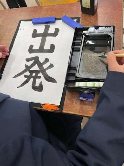 4年生は『出発』を毛筆で書いています。『発』の正しい書き順、わかりますか?