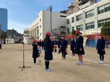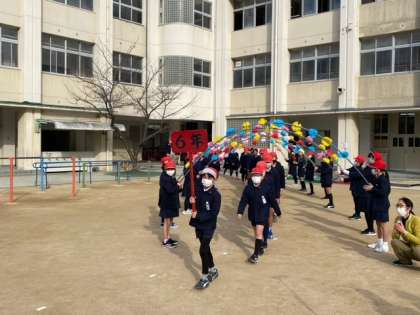 今日は卒業おめでとう集会がありました。今回はコロナ感染症対策として1組と2組に分けて運動場で行いました。今年度のファミリーのメンバーが揃うのは今日で最後です。6年生のみなさんにしっかり感謝の気持ちを送りましょう。