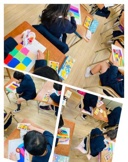 今日の図工では、「スクラッチ」をしました。国語で学習している物語「スイミー」を題材にしまいた。スイミーが海の中で見たおもしろいものの中から、自分のお気に入りを1つ選んで描きます。