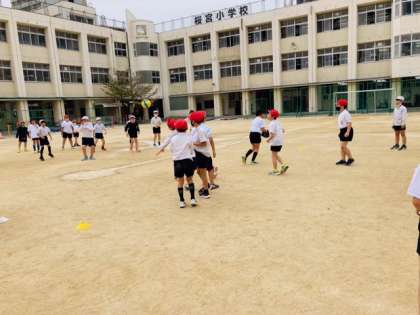 今日は,4年生全員でふえおにやドッジボールなどをしました。